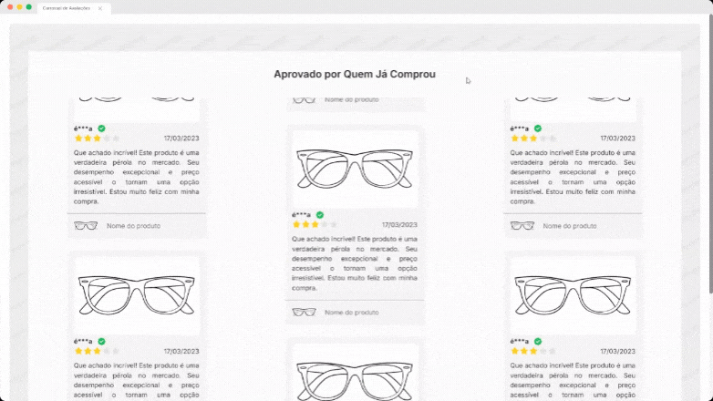 O widget pode ser adicionado à página inicial da loja ou em uma página exclusiva de depoimentos.