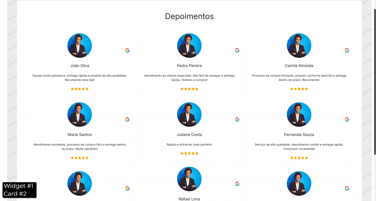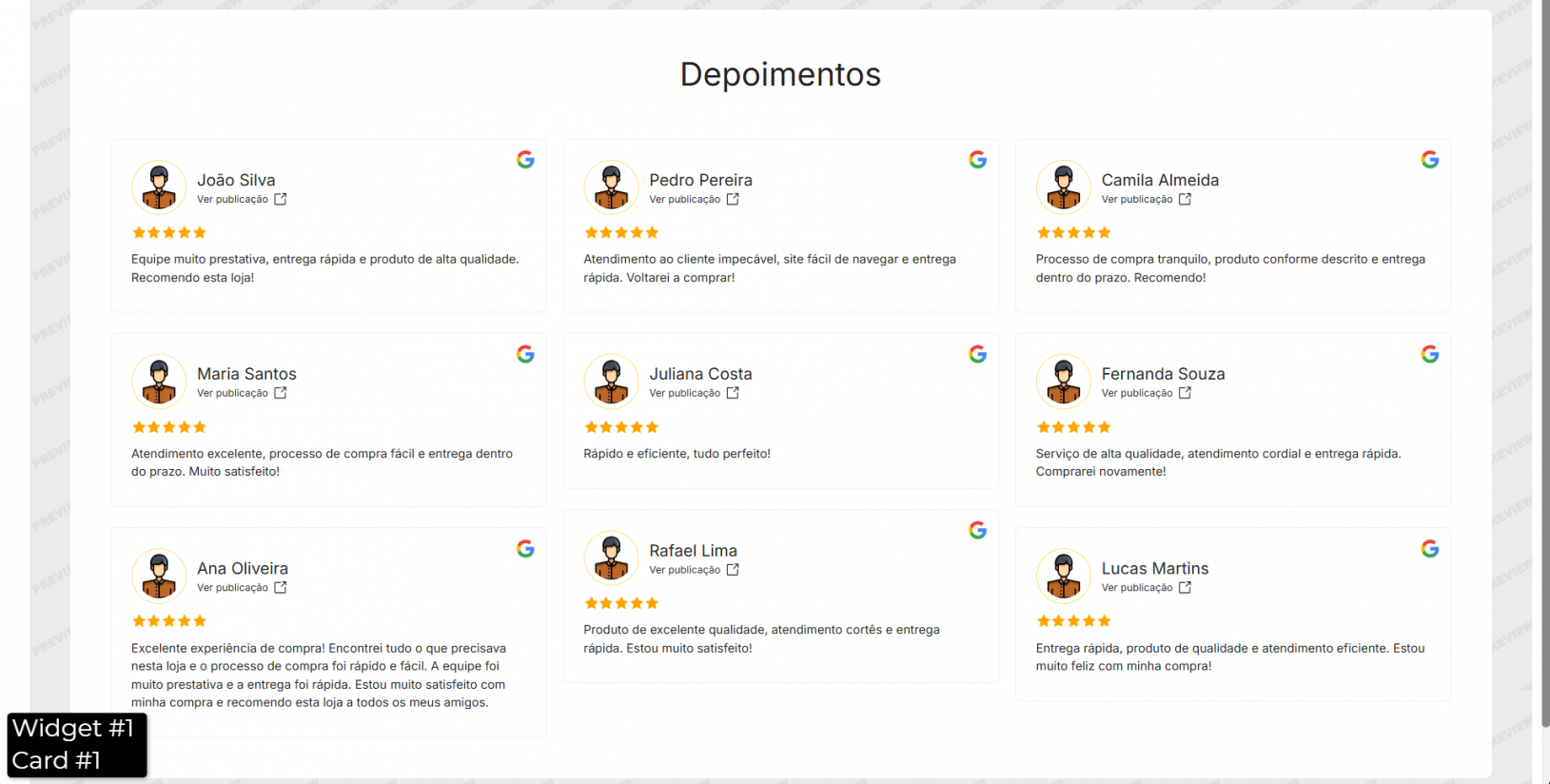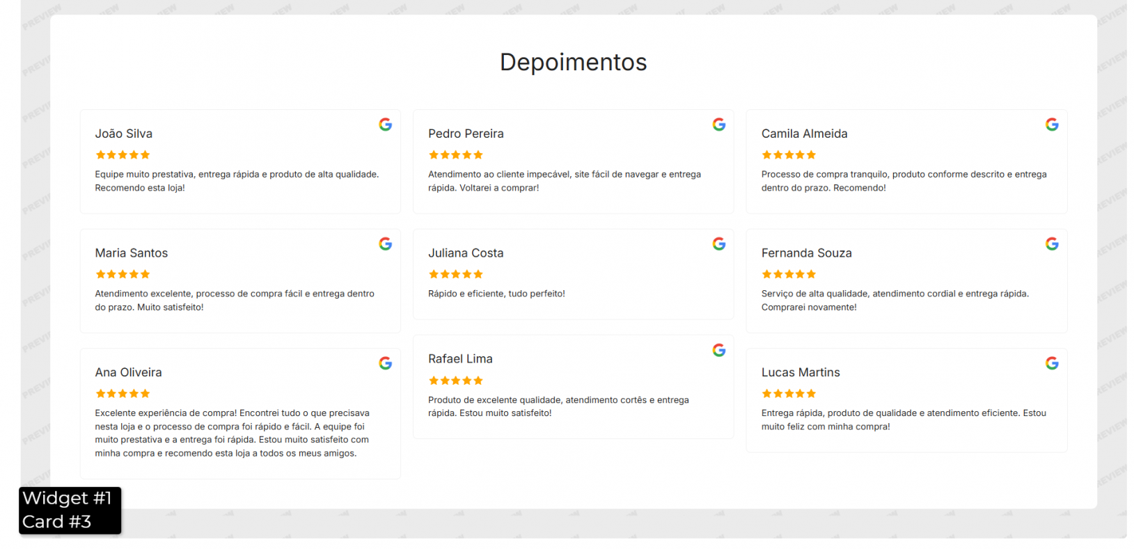 Modelos de Widget de Depoimentos do Google